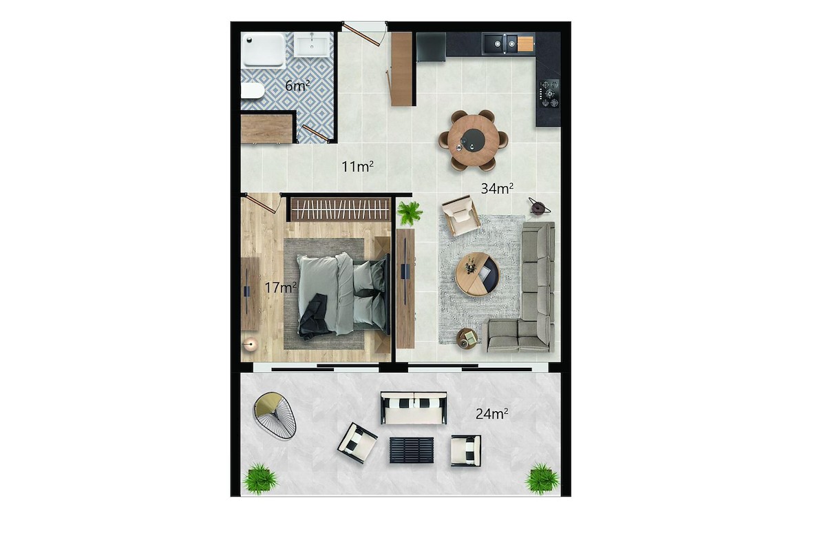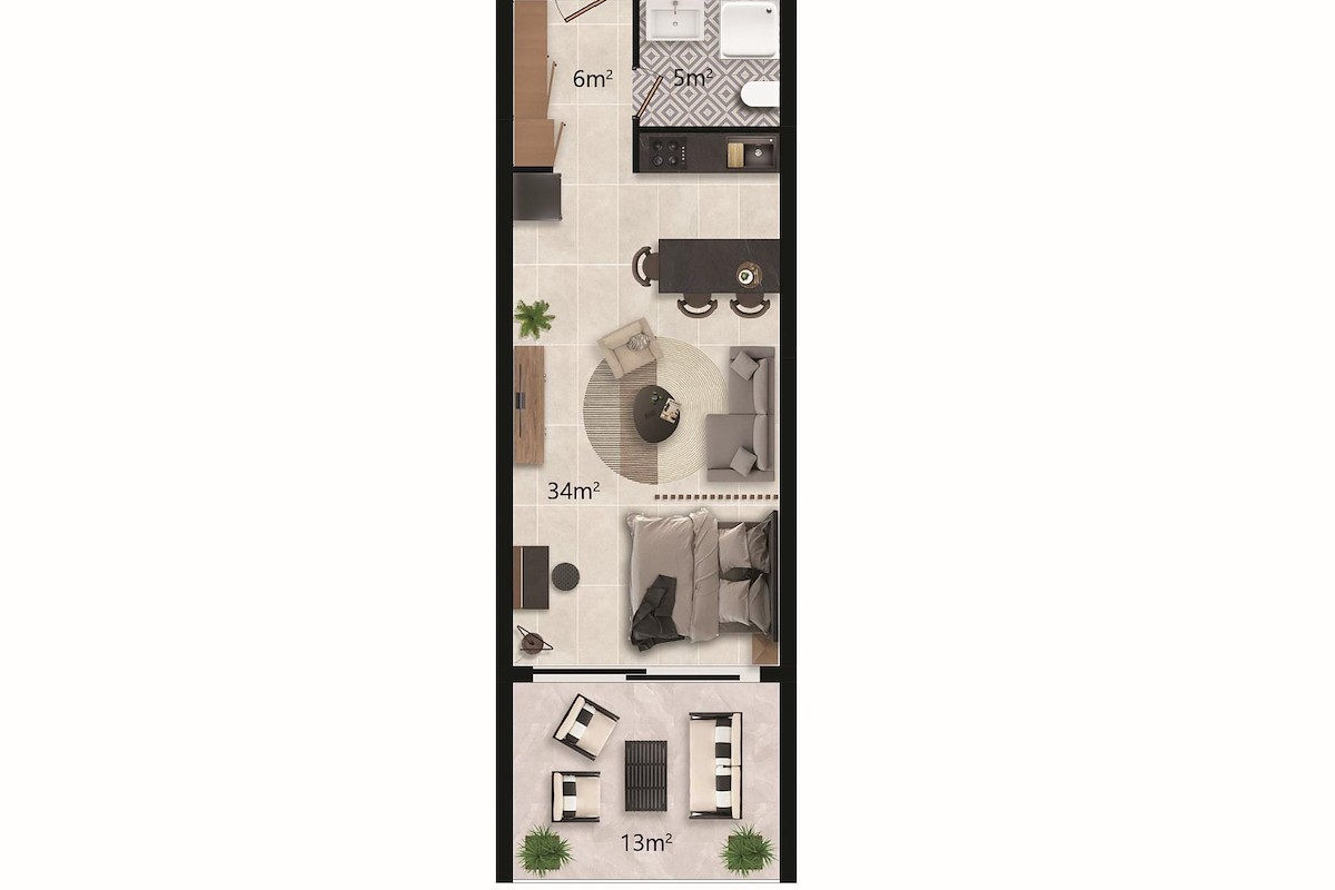 This new residential complex in Iskele Long Beach located just 600 meters from the sea with its golden sandy beaches. This low-rise complex boasts a low population density, making it one of the few non-high-rise developments on Long Beach. Offering affordable prices per square meter, the spacious apartments feature large balconies and generous living areas.